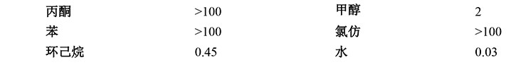 3、 溶解性@20℃ (g/100g 溶劑)